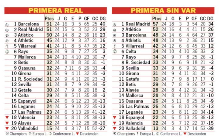 - 360搜索:西甲比赛中VAR的改变:皇马巴萨积分榜排名不同